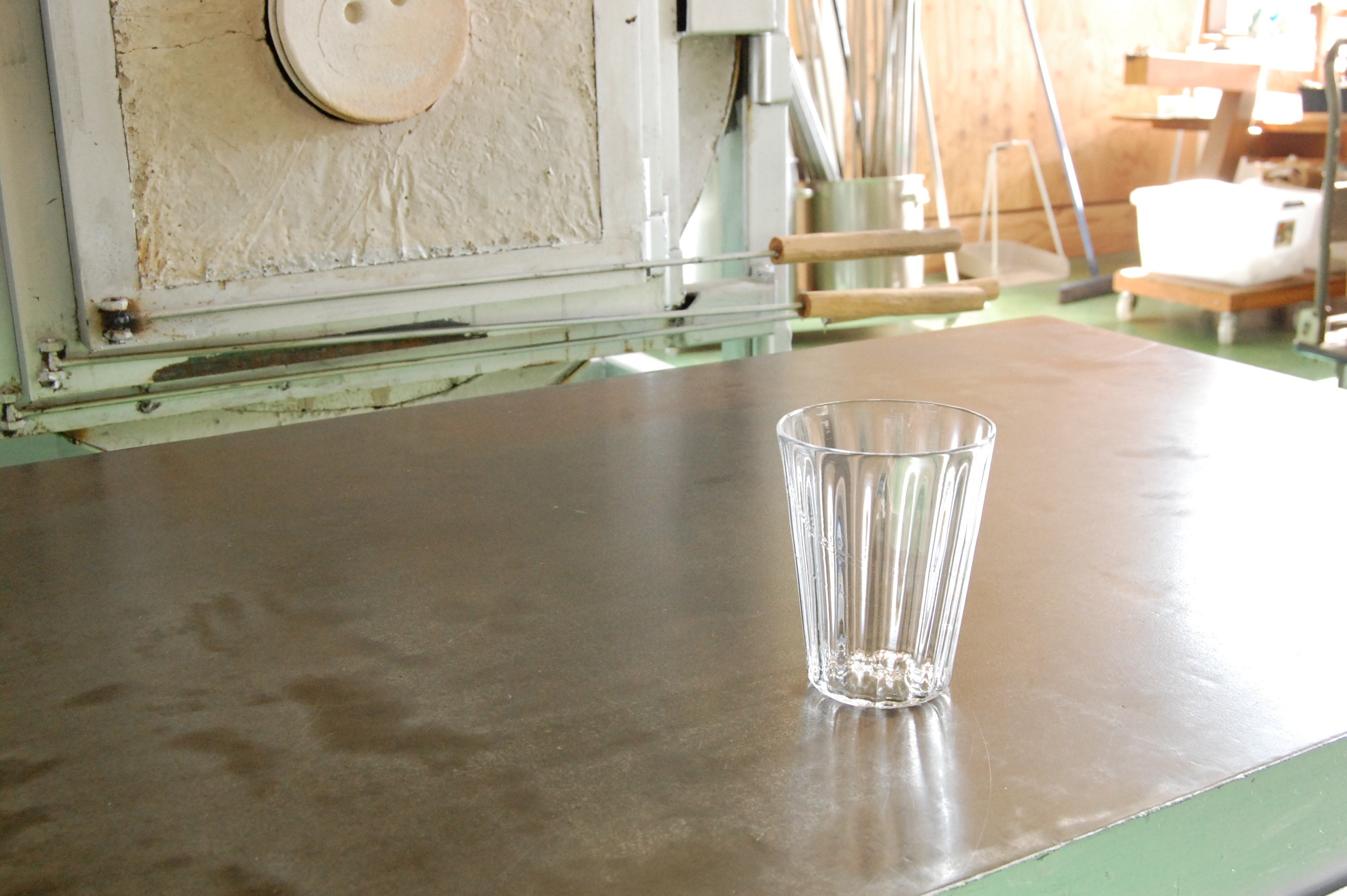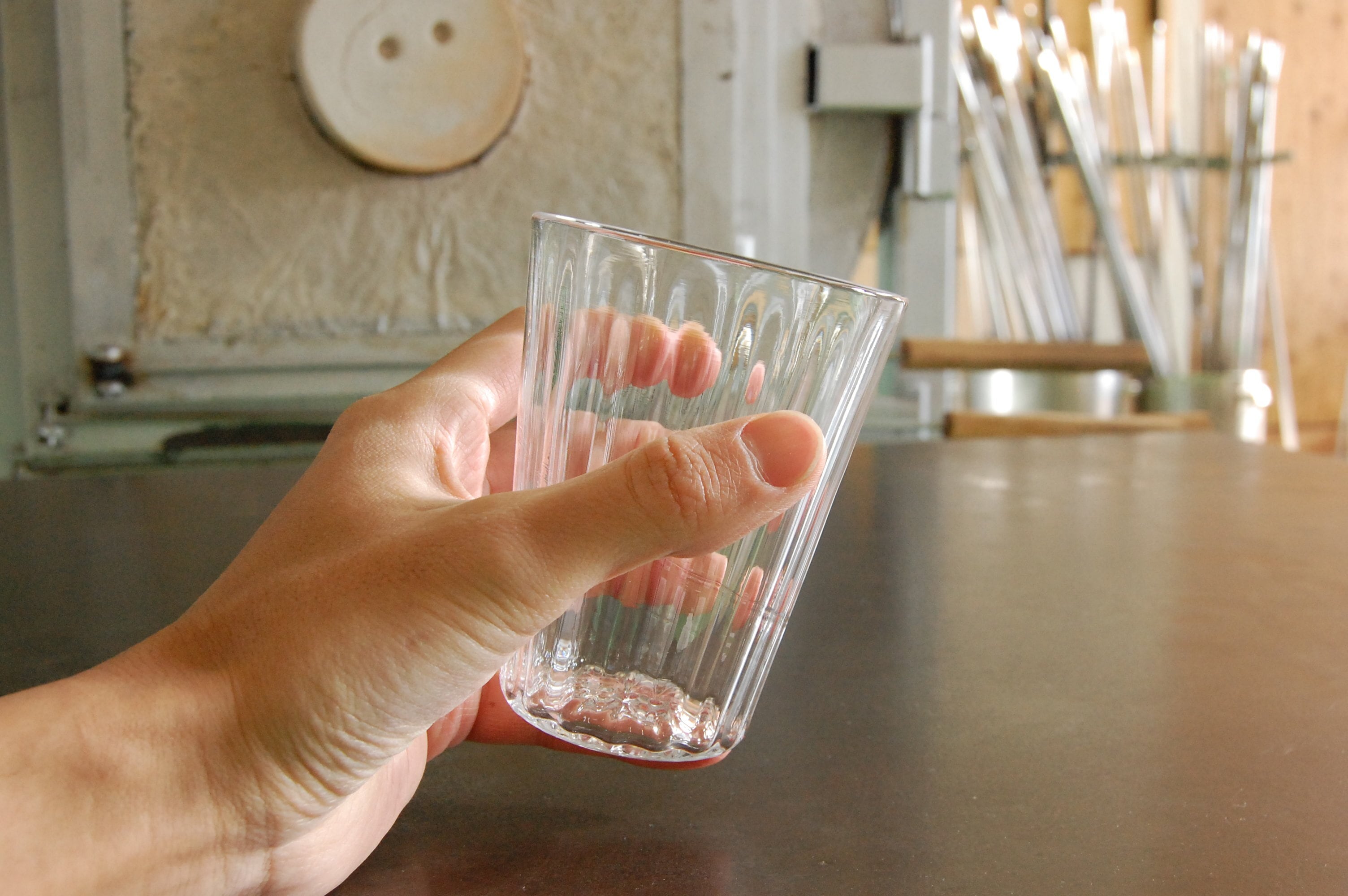 モールドと言う縦線が入る型に吹き込み縦スジを作っています。